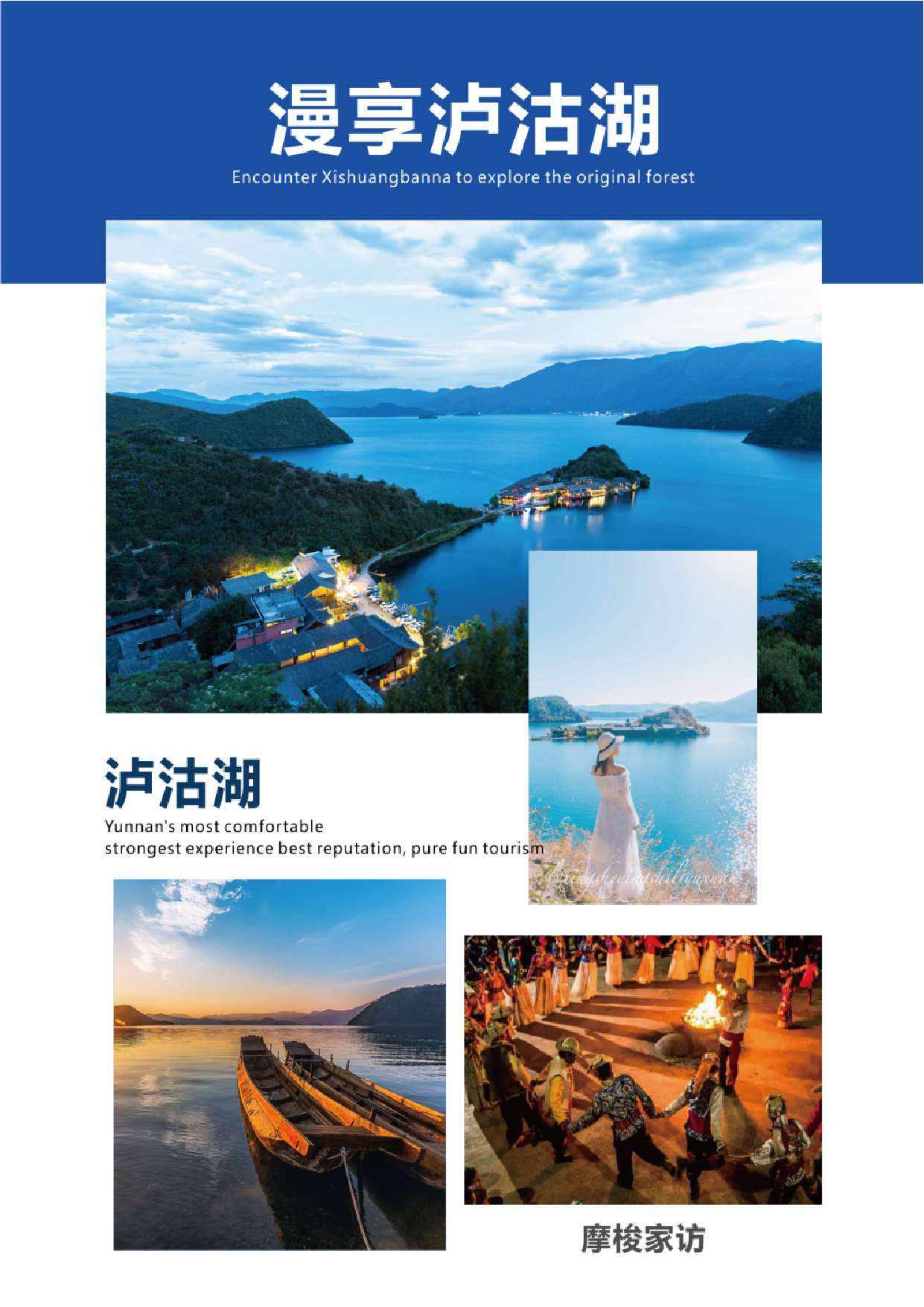 早餐後(hòu)乘車前往有“高原明珠”之稱的【泸沽湖景區】途中甯蒗縣用午餐,午餐後(hòu)繼續乘車前往泸沽湖景區,抵達後(hòu)前往泸沽湖三家村遊船碼頭乘豬槽船登【裡(lǐ)務比島】。遊覽【裡(lǐ)務比寺】裡(lǐ)務比島位于泸沽湖的中南部,島嶼的一側爲石筍,成(chéng)爲天然的碼頭,一條蜿蜒的小道(dào)直接通往島嶼的頂部,道(dào)路旁邊有許多杜鵑花以及野櫻桃樹。花叢的盡頭爲藏傳佛教寺院裡(lǐ)務比寺,島頂有一白塔。裡(lǐ)務比島與謝瓦俄島,裡(lǐ)格島并稱爲泸沽湖蓬萊三島。之後(hòu)乘車開(kāi)始360度環湖,途經(jīng)裡(lǐ)格觀景台,情人沙灘,草海走婚橋。乘車前往小落水參加【摩梭走婚宴】到原始的摩梭人家做客,品嘗摩梭特色民族餐。乘車前往我們特意爲您安排的【摩梭篝火晚會(huì)】泸沽湖是女兒國(guó),又是歌舞的王國(guó)。泸沽湖畔的摩梭村寨,每晚都(dōu)要舉行篝火晚會(huì),您可以和帥氣的摩梭小夥子、美麗的摩梭姑娘一起(qǐ),圍著(zhe)篝火跳起(qǐ)歡樂的舞蹈!乘車返回酒店休息。